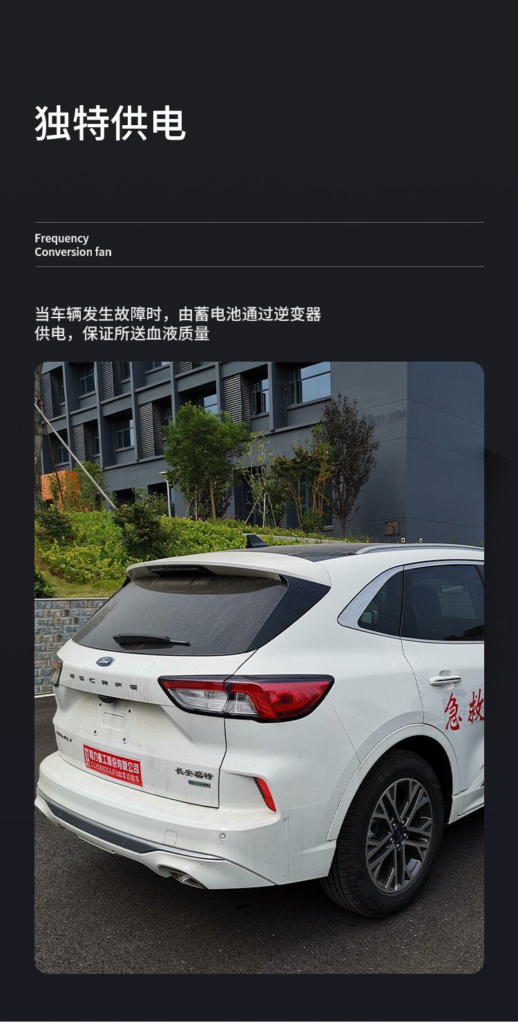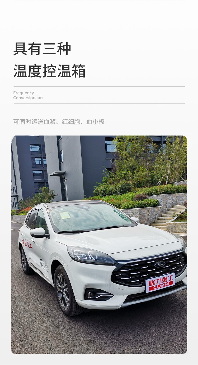 “生命之舟”急救送血車/血漿運(yùn)輸車獨(dú)特優(yōu)勢(shì): 一、“生命之舟”急救送血車是中華人民共和國工業(yè)和信息化部公告(詳見車輛生產(chǎn)企業(yè)及產(chǎn)品第234批)公布的國內(nèi)一家生產(chǎn)的血漿運(yùn)輸車。 二、“生命之舟”急救送血車具有三種溫度控溫箱,可同時(shí)運(yùn)送血漿、紅細(xì)胞、血小板。 三、“生命之舟”急救送血車具有三種供電方式: 1、出車前可用220V市電供壓縮機(jī)工作,把送血箱溫度降下來,減少汽油使用量。2、運(yùn)輸中主要由加裝的電池供電。3、當(dāng)車輛發(fā)生故障時(shí),由蓄電池通過逆變器供電,保證所送血液質(zhì)量。 四、“生命之舟”急救送血車箱溫控制精確,可控制在設(shè)定溫度±1℃。 五、“生命之舟”急救送血車紅細(xì)胞與血漿箱溫度可根據(jù)送血需要互相轉(zhuǎn)換,或調(diào)成同一溫度。 六、“生命之舟”急救送血車血漿箱溫度可控制在-22℃。 七、“生命之舟”急救送血車具有數(shù)據(jù) 功能,可長(zhǎng)期保存運(yùn)輸中溫度控制情況,便于查根溯源。